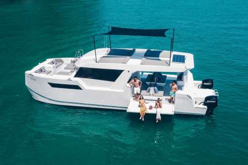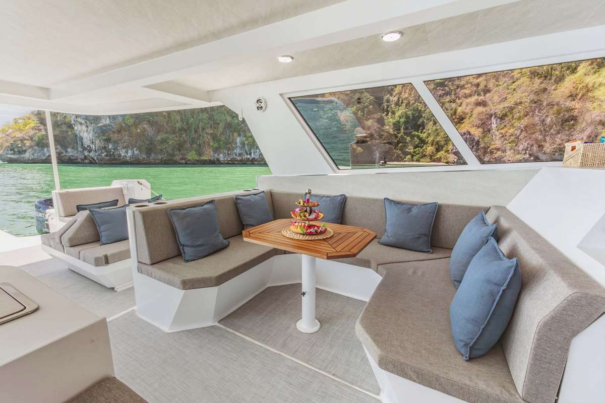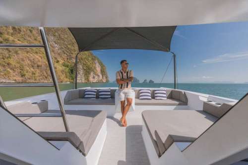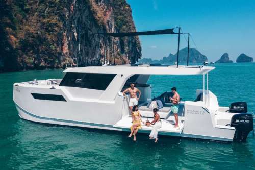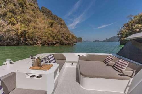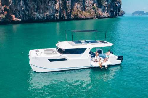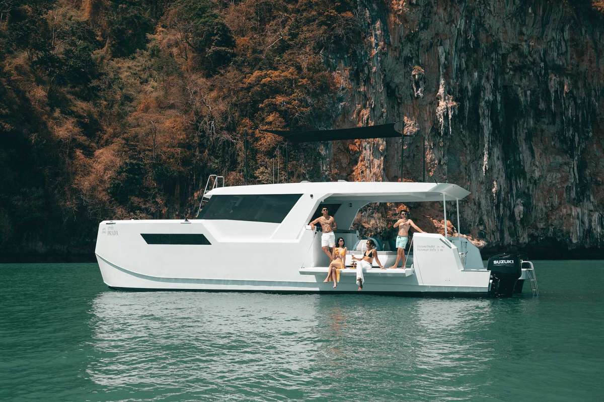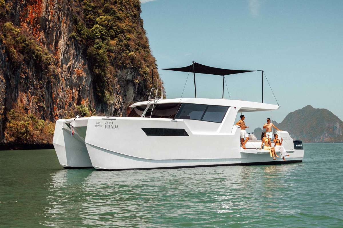 Meet PRADA, our sleek 50ft power catamaran, built in 2025, now available for charter in Phuket. Designed for guests who want space, stability, and effortless style on the water, PRADA delivers a premium yachting experience from the moment you step aboard. Her wide beam provides exceptional comfort, with generous seating areas perfect for relaxing, socializing, or soaking up the sun. The modern design is paired with smooth, efficient performance, making cruising calm and enjoyable even over longer distances. Whether you’re anchoring in a secluded bay, island hopping with friends, or hosting a special celebration, PRADA adapts effortlessly to every occasion.