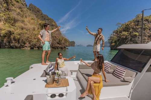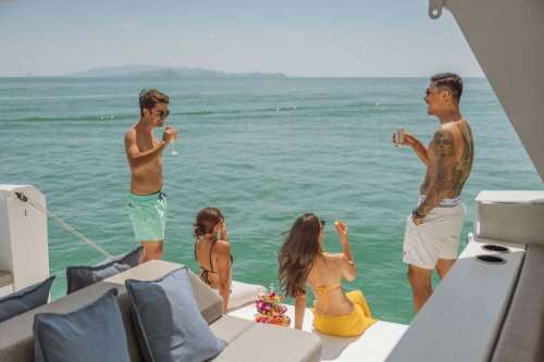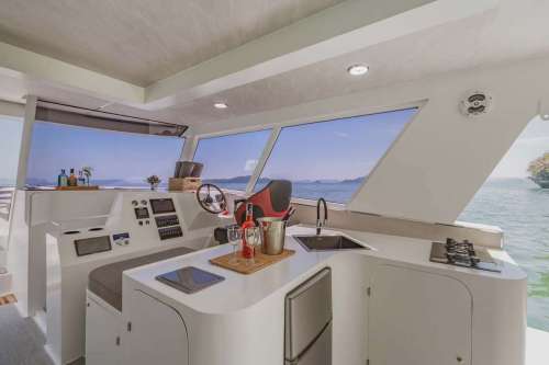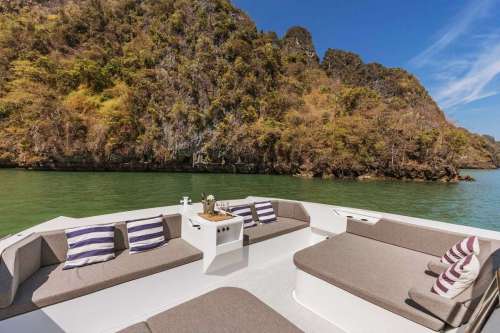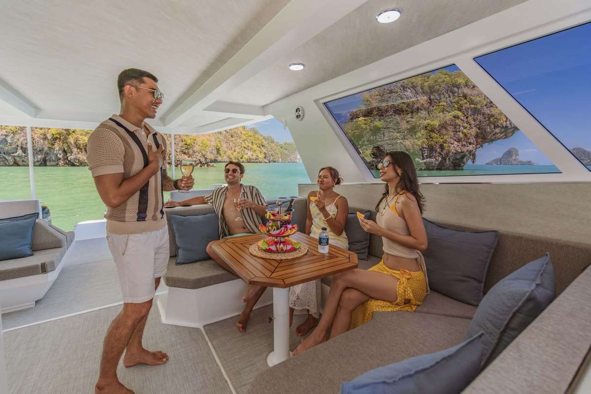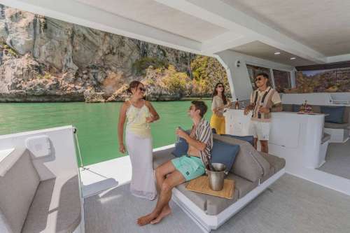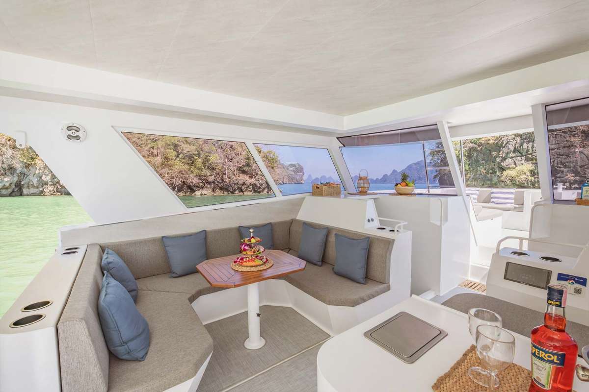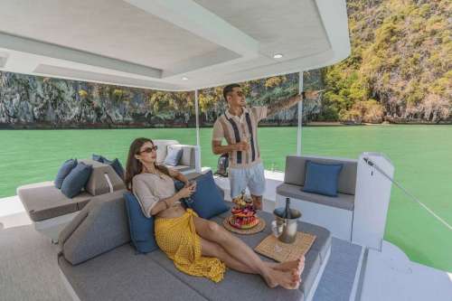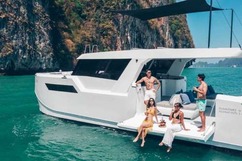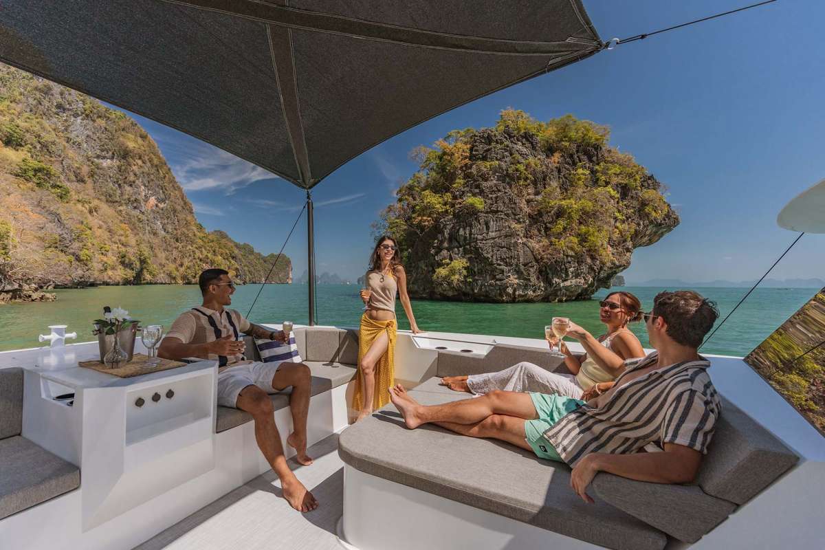 Meet PRADA, our sleek 50ft power catamaran, built in 2025, now available for charter in Phuket. Designed for guests who want space, stability, and effortless style on the water, PRADA delivers a premium yachting experience from the moment you step aboard. Her wide beam provides exceptional comfort, with generous seating areas perfect for relaxing, socializing, or soaking up the sun. The modern design is paired with smooth, efficient performance, making cruising calm and enjoyable even over longer distances. Whether you’re anchoring in a secluded bay, island hopping with friends, or hosting a special celebration, PRADA adapts effortlessly to every occasion.
