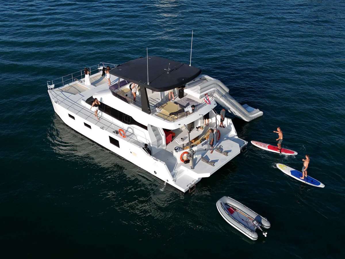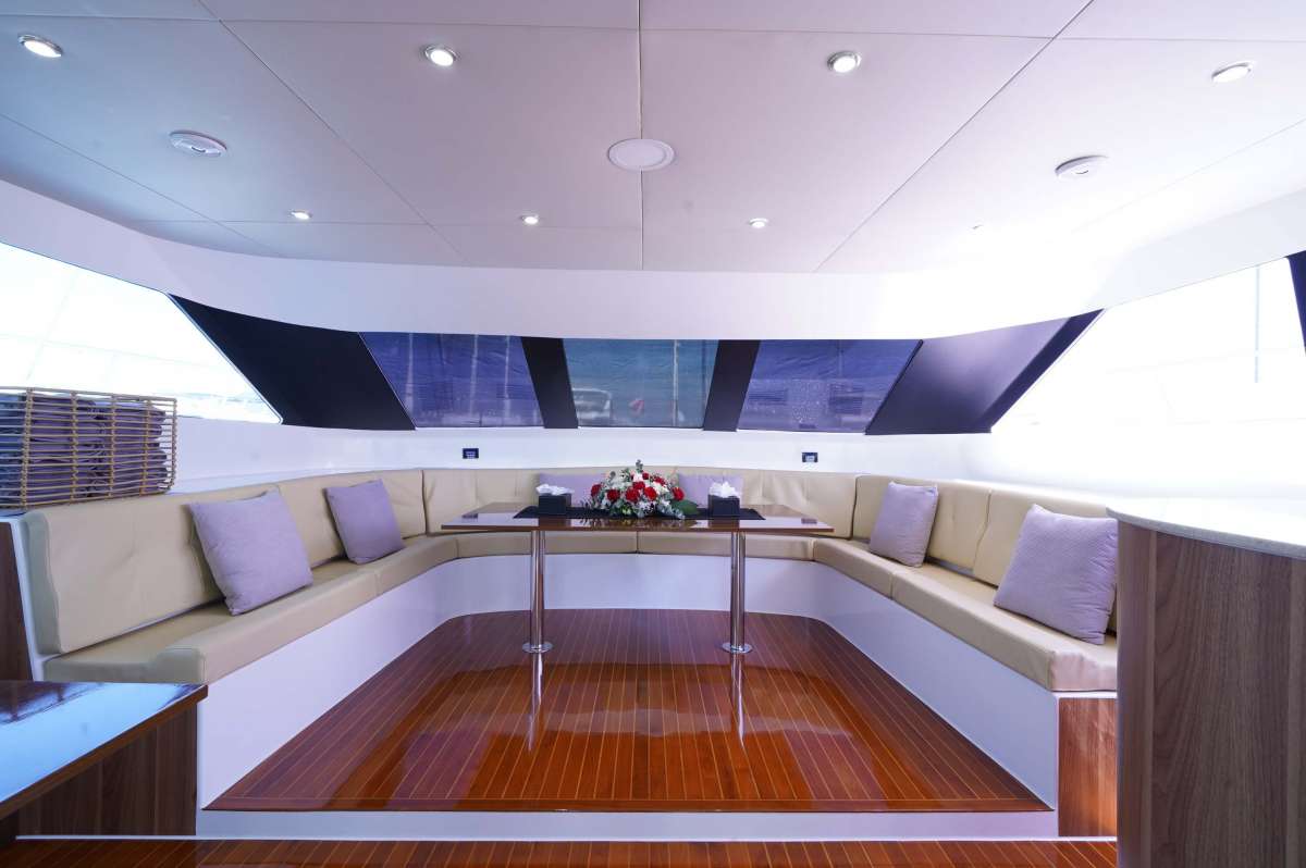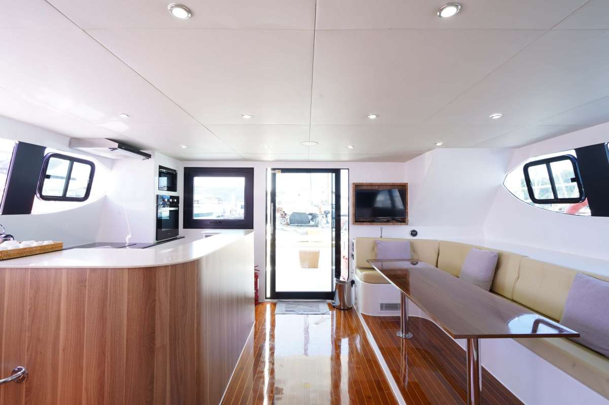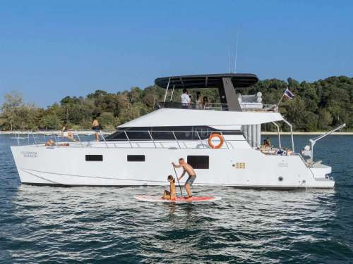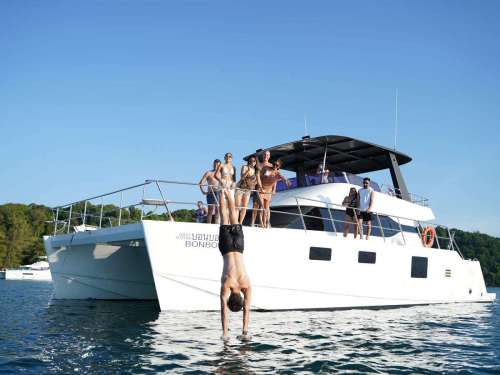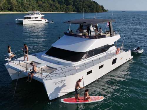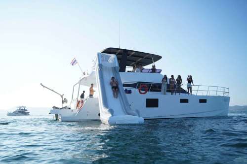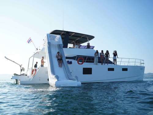 Maker: Power Catamaran Model: 2020 Sleeping places: 3 Fuel: 52ft Capacity: 40 Speed: 10 knots